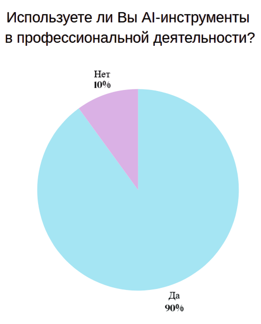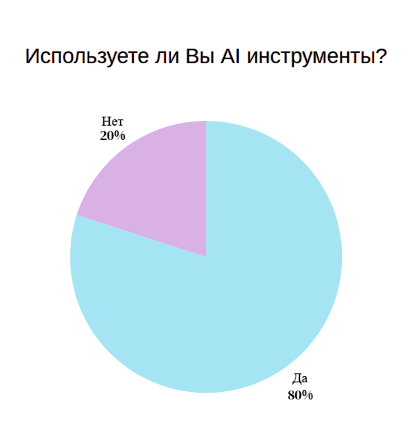 80% респондентов отметили, что используют AI. Среди них практически одинаковое соотношение по применению в повседневных делах и профессиональной деятельности.