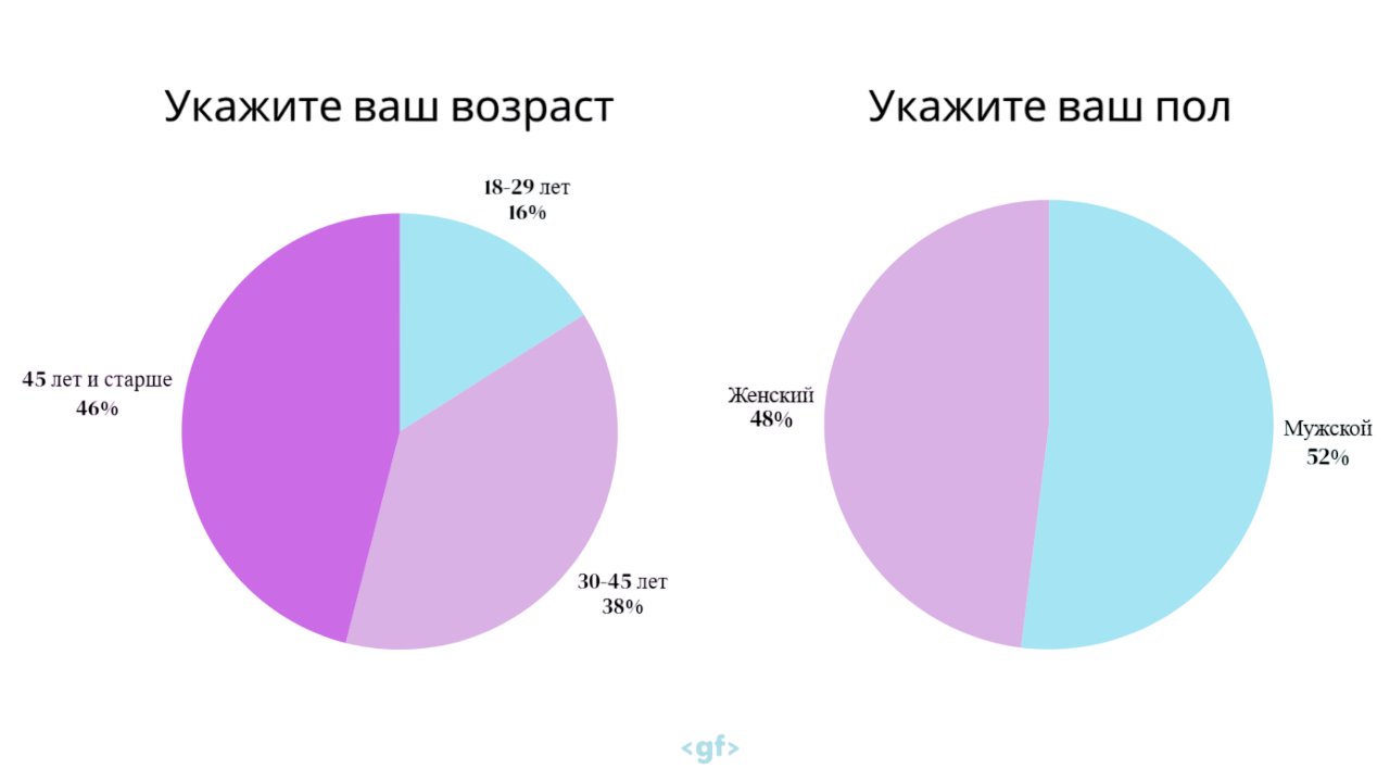 В рамках нашего исследования был проведён опрос среди трудоспособного населения. Целью опроса стало определить распространенность использования генеративных моделей и сравнить уровни выгорания и уровни удовлетворенности профессиональным путем среди населения, использующего AI-инструменты, и населением, которое их не использует. В опросе приняли участие 125 респондентов. Возрастное распределение: 46% участников старше 45 лет, 38% находятся в диапазоне 30–45 лет, 16% молодые специалисты 18–29 лет. Гендерное распределение близко к симметричному (52% мужчины, 48% женщины), исходя из чего мы можем считать минимальными возможные смещения, связанные с половыми различиями.